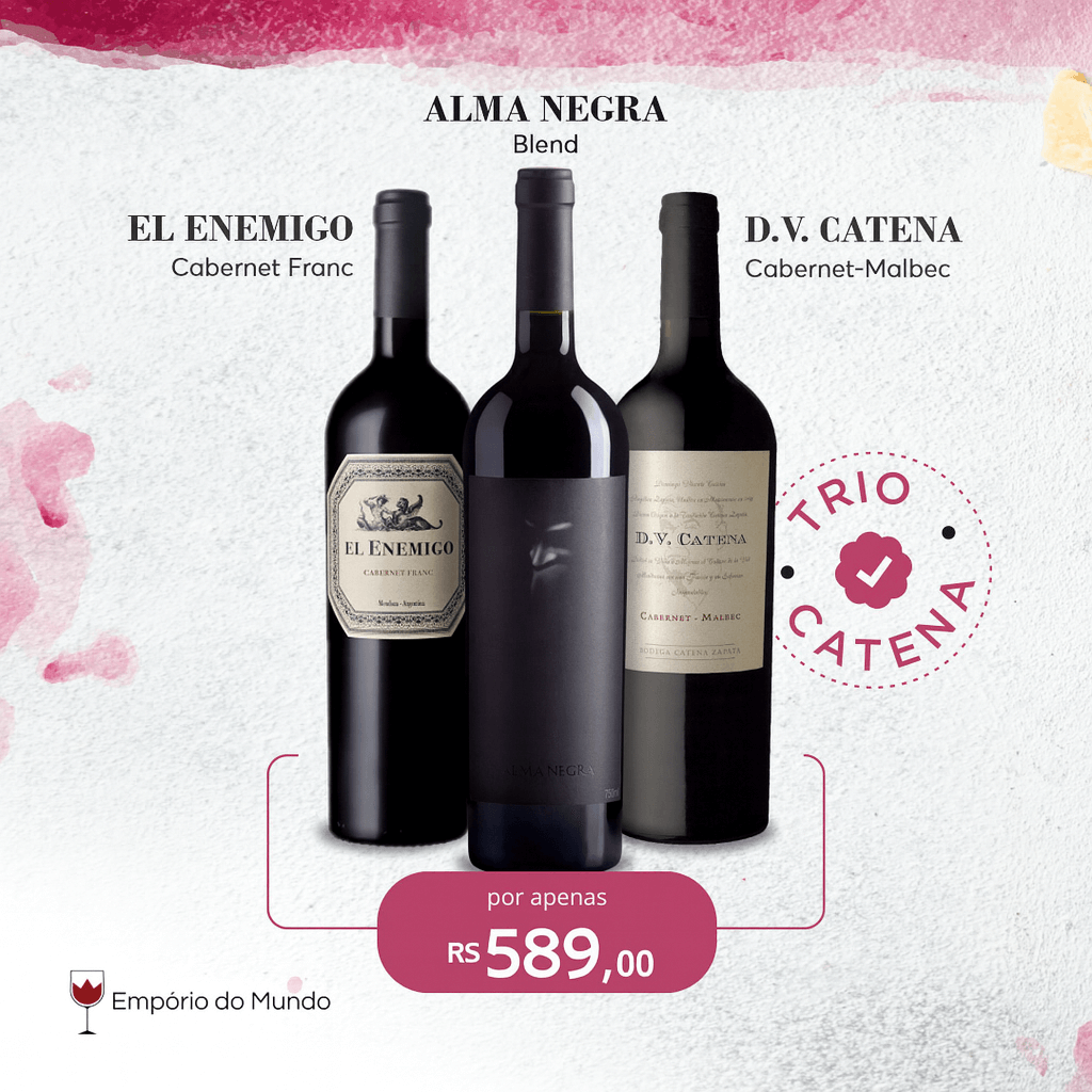 Kit 3 Vinhos Argentinos - 1 Alma Negra + 1 D.V Catena + 1 El Enemigo
